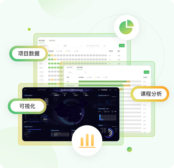 從培訓項目數(shù)據(jù)、員工學習檔案、平臺數(shù)據(jù)大屏,可視化、可導出的數(shù)據(jù)助力企業(yè)評估培訓效果,調整培訓計劃。