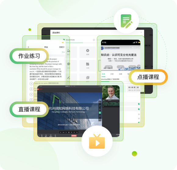 點播、直播、PPT、作業(yè)練習、在線討論等12+教學方式,打造“教學測評練管”線上學習閉環(huán)。